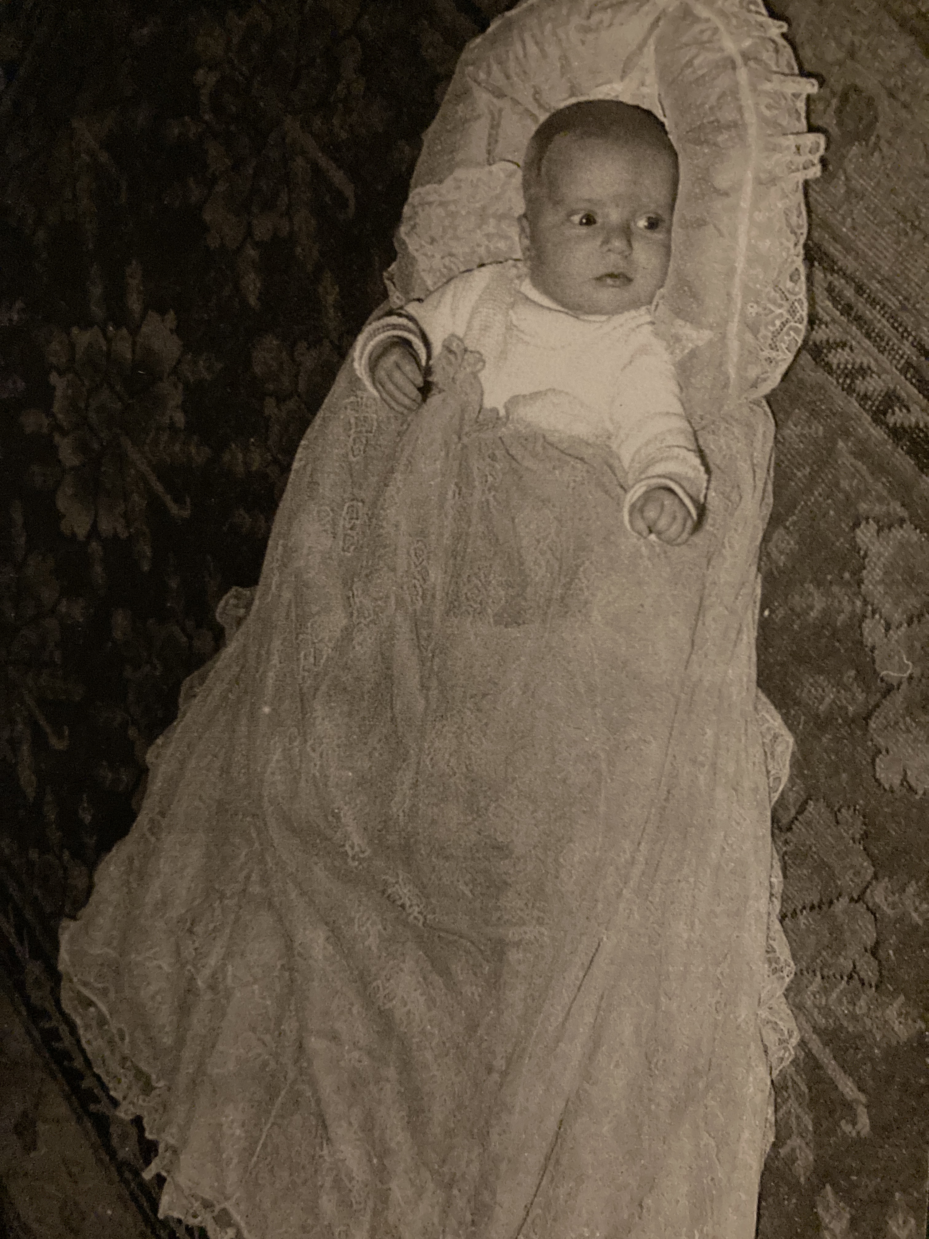 This little booklet is a collection of information about the Christening Pillow that has been in the Alt Raudten branch of the von Schweinitz since 1872. Helga collected enough information to create a tree of everybody who has been baptized in the pillow. The pillow actually consists of a pillow and an outfit. Both boys and girls use the same outfit during the baptism.